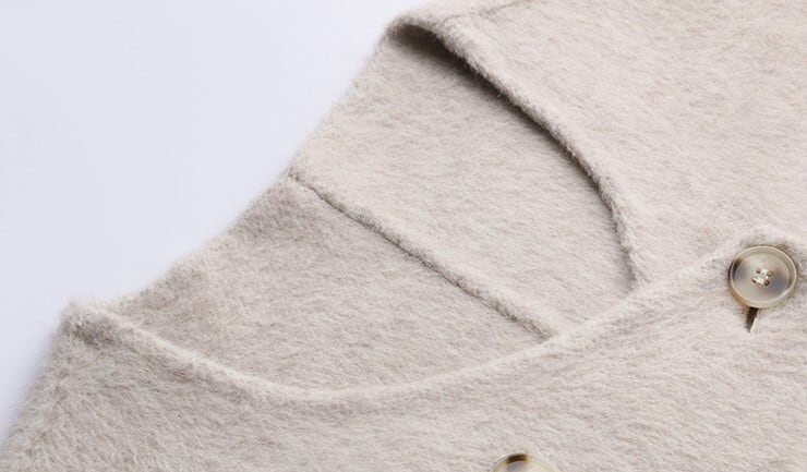 Collarless elegant long wool coat