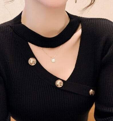 着用するだけで大人可愛い雰囲気が漂うホルターネックエレガントスリムフィットニット。
