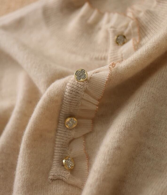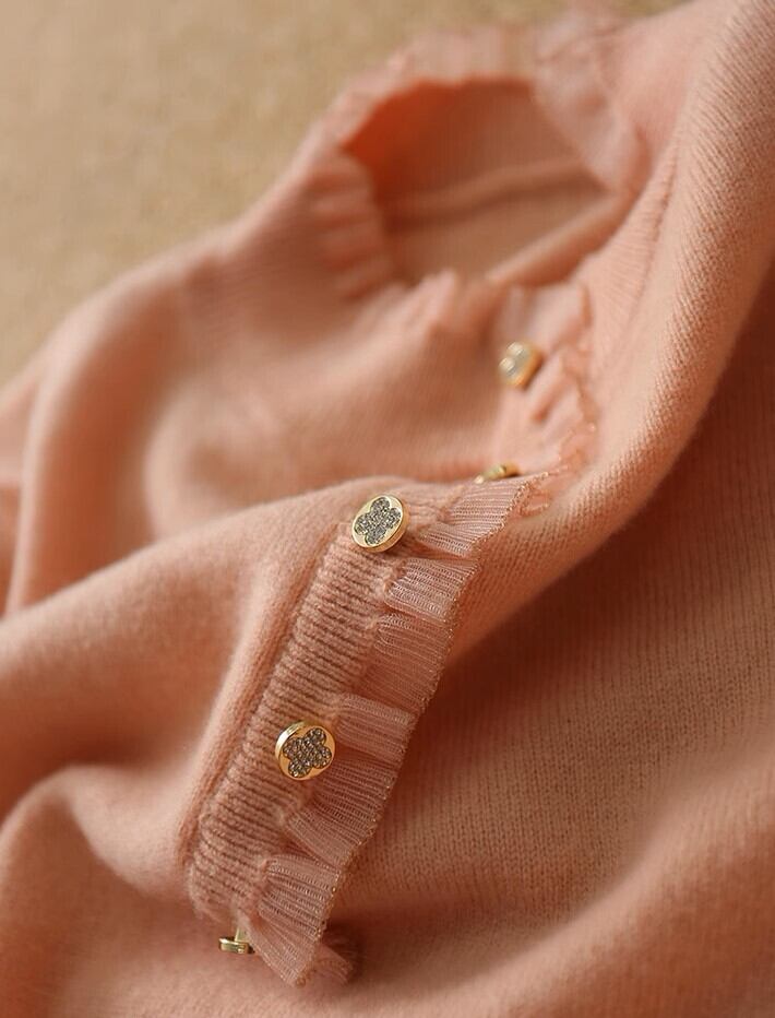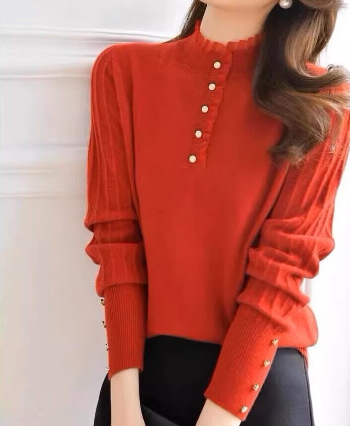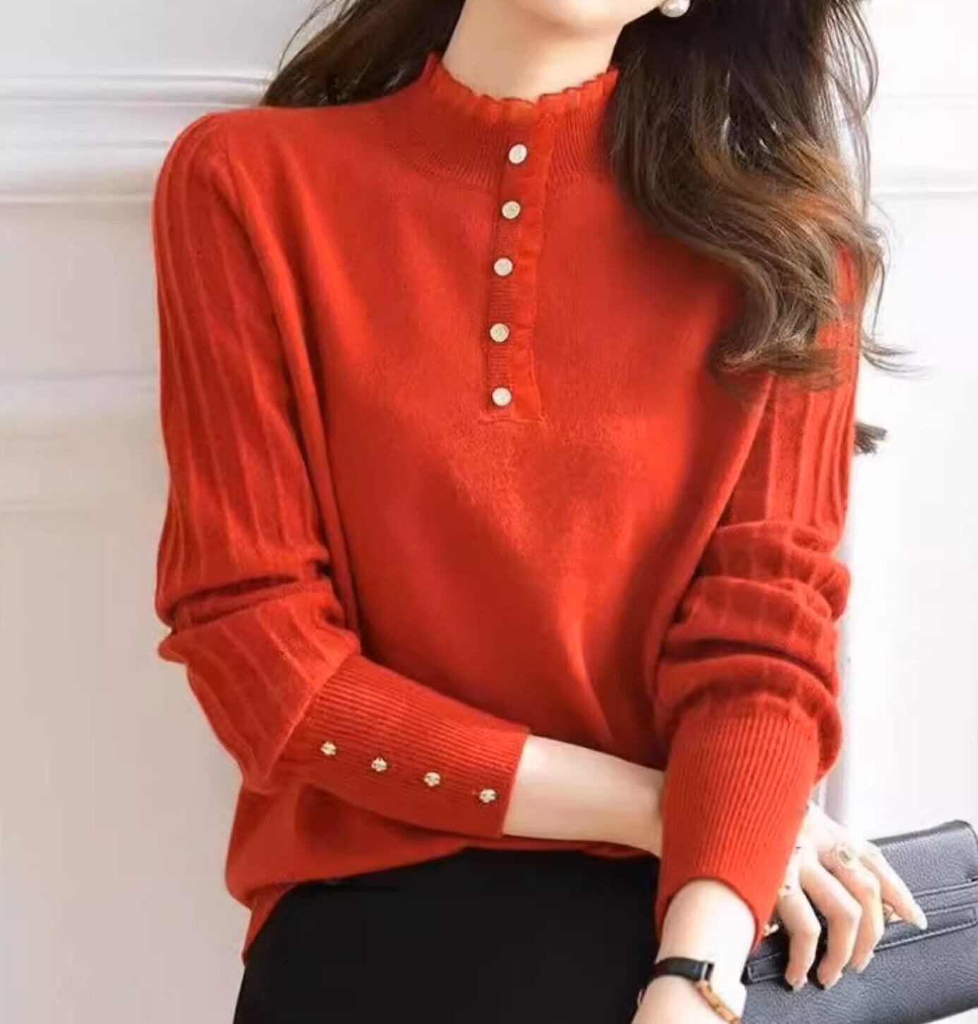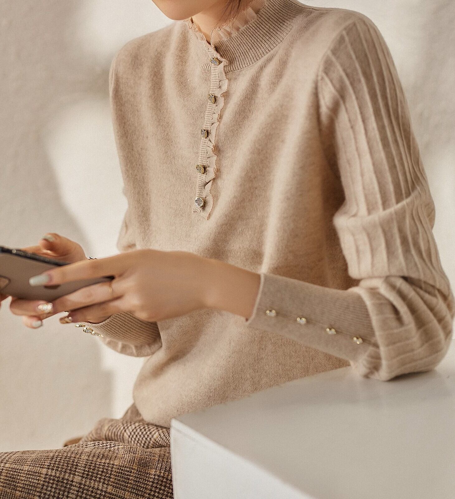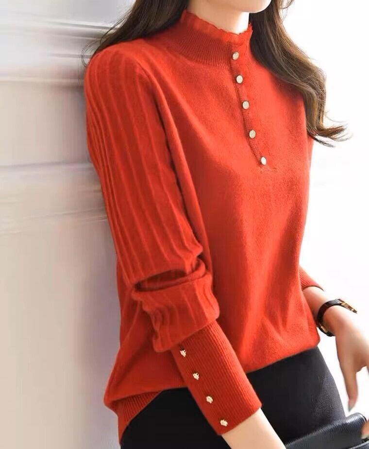 着用するだけで大人可愛い雰囲気が漂うハーフハイネックエレガントメッシュステッチスリムニット。