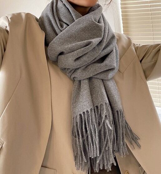 羽織るだけでフェミニンな雰囲気が漂うエレガントチェックウールマフラー。