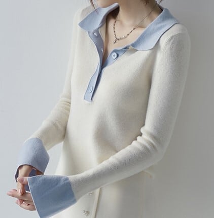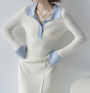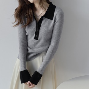 着用するだけで大人可愛い雰囲気が漂うポロカラーエレガントフレアスリーブスリムニット。
