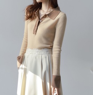 Polo collar elegant flare sleeve slim knit ( 4color )