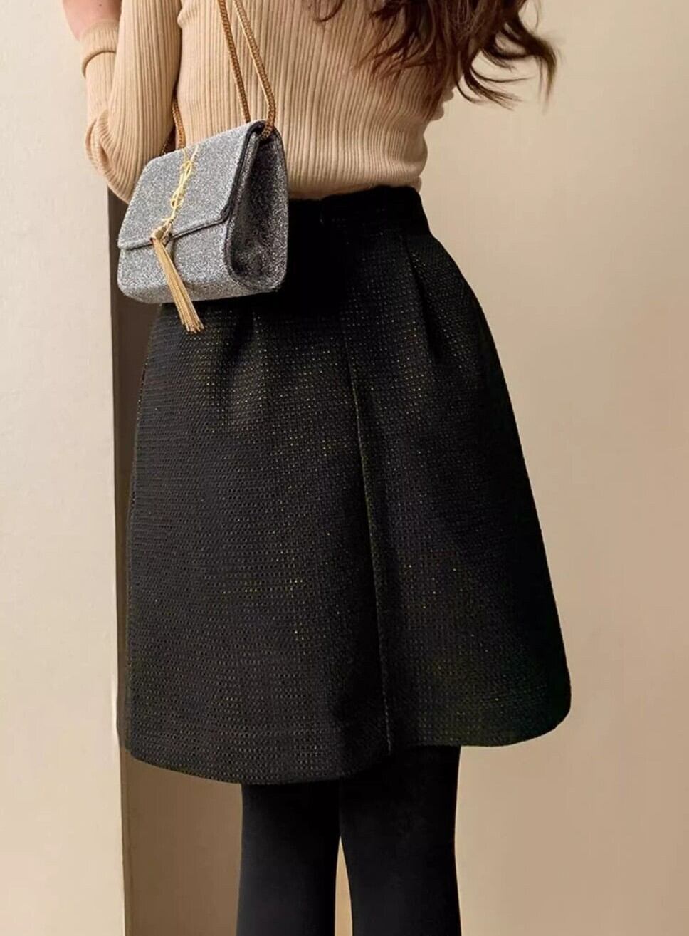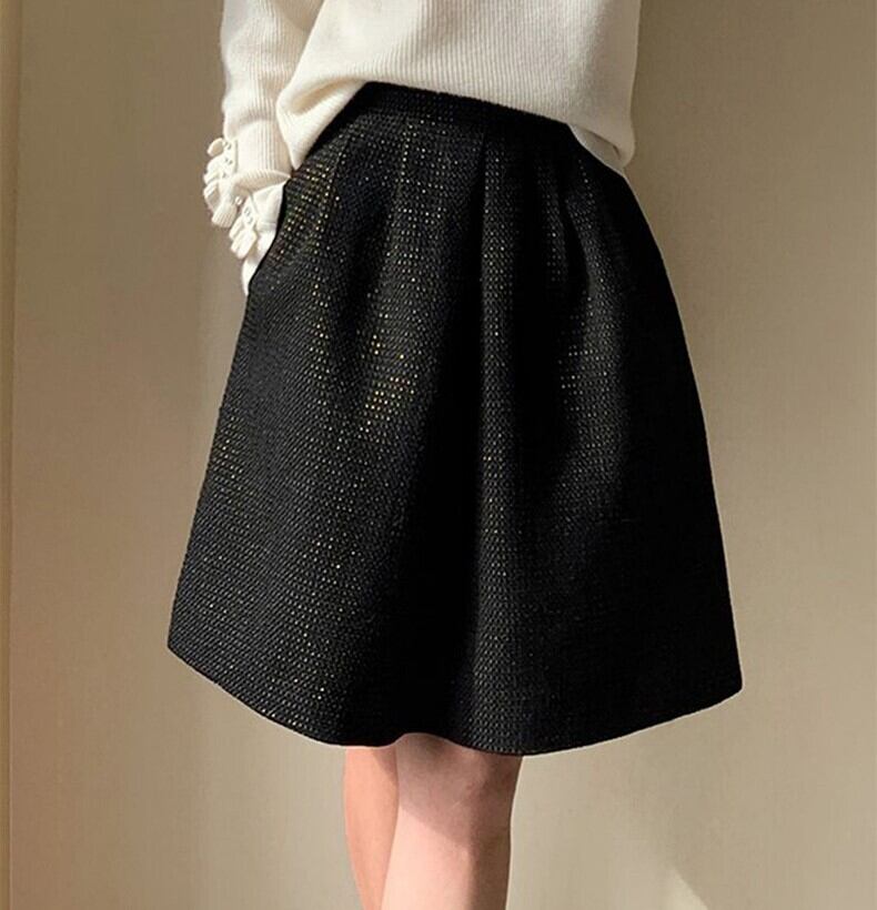 着用するだけで大人可愛い雰囲気が漂うハイウエストエレガントレトロツイードスカート。