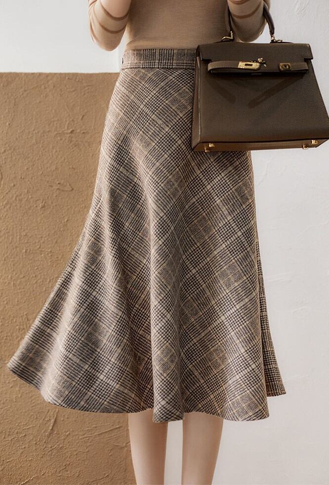着用するだけで上品でエレガントな雰囲気が漂うハイウエストエレガントラージスイングチェックスカート。