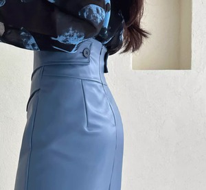 High waist elegant cross stitch middle leather skirt ( 2color )