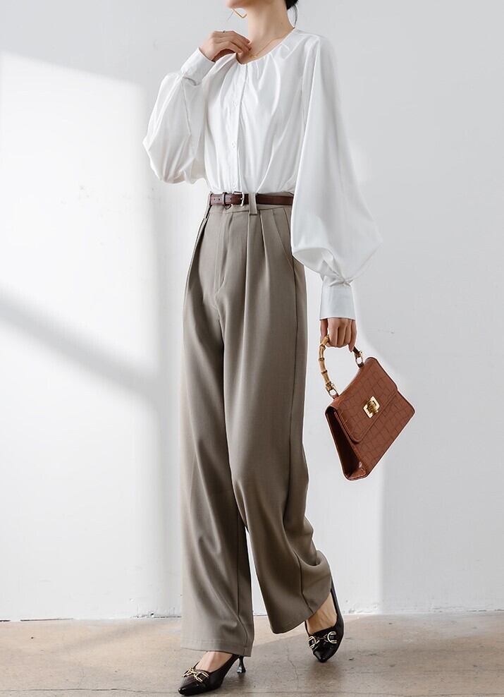 着用するだけで上品さと大人可愛さが漂うカラーレスエレガントランタンスリーブブラウス。