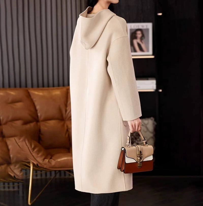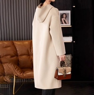 Single breast elegant hooded long wool coat 2025 新作