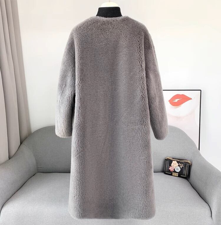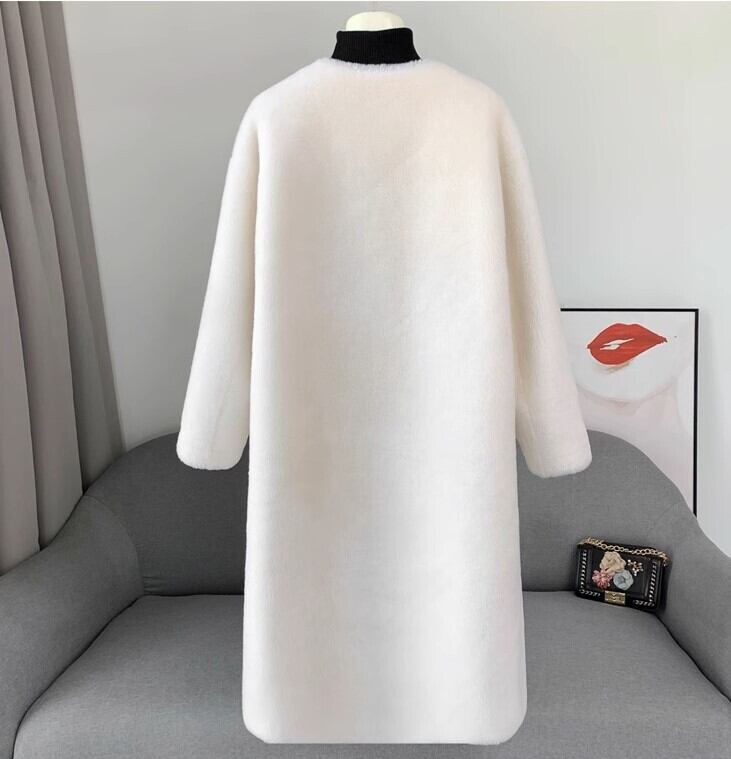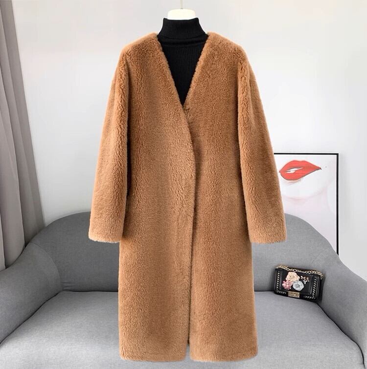 V neck elegant fluffy velvet long coat 2025 新作