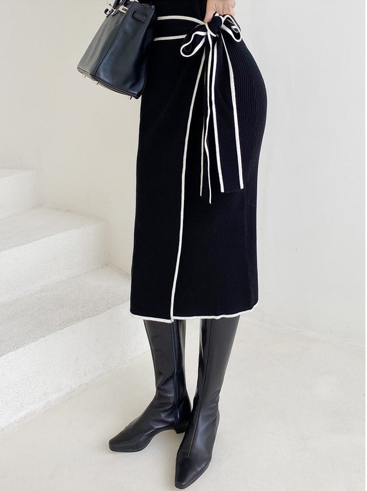 ハイウエスト、ウエストストラップデザインがスタイルを引き締めます。