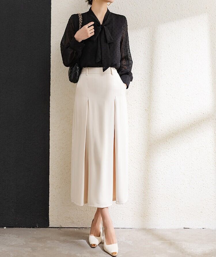着用するだけで上品でエレガントな雰囲気が漂うチェストタイエレガントレトロポルカドットシフォンシャツ。