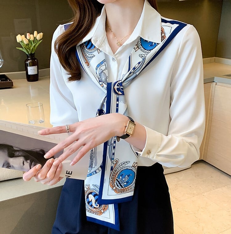 Scarf stitch elegant slim chiffon blouse 2025 新作
