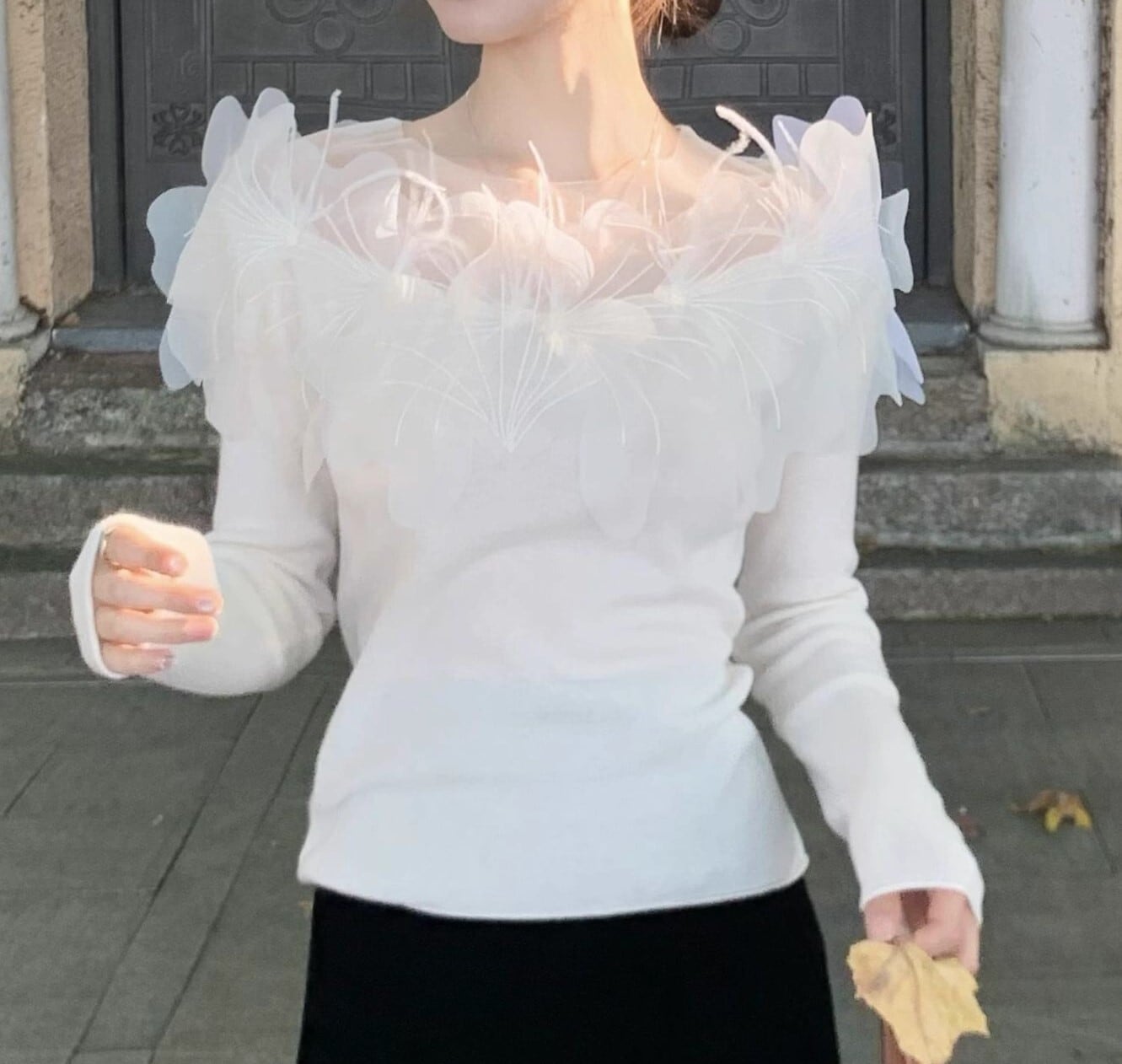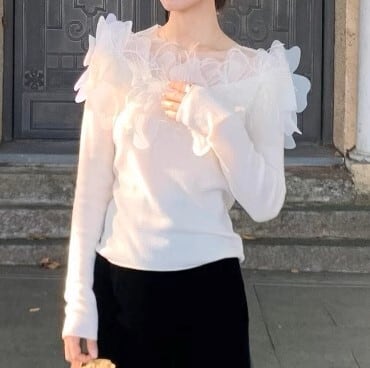 Mesh flower elegant slim fit knit 2025 新作
