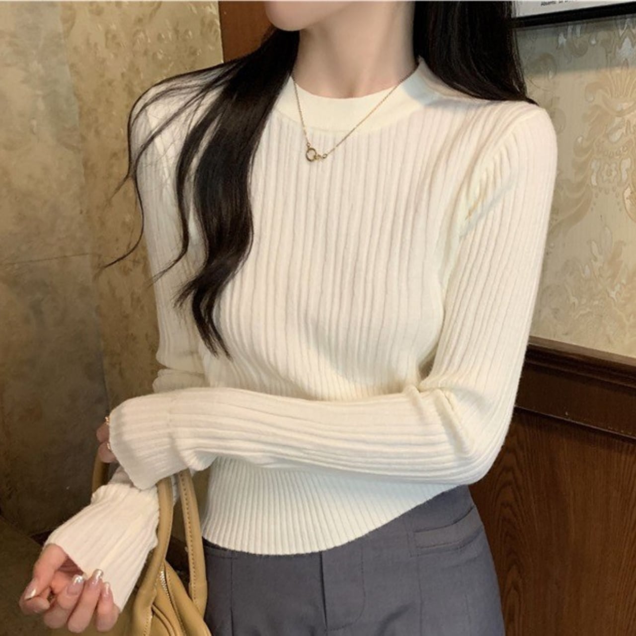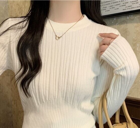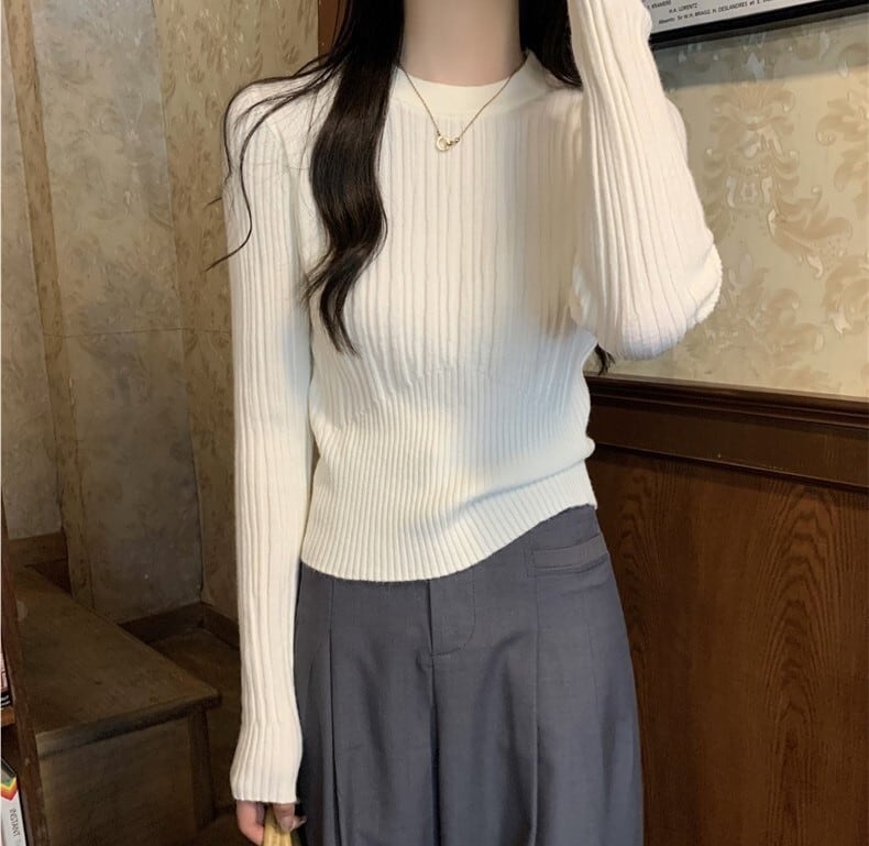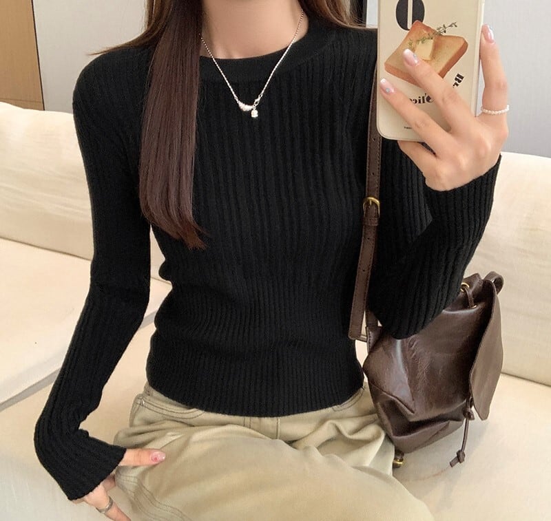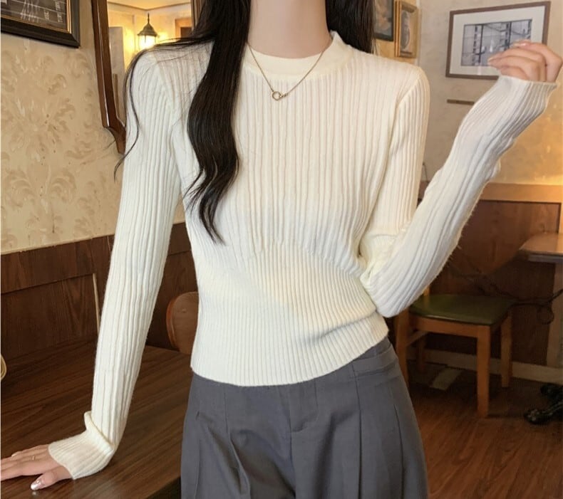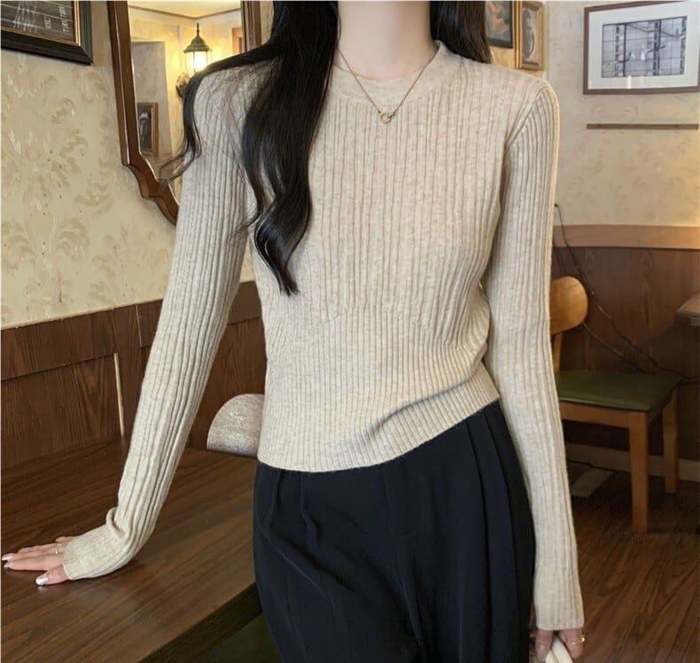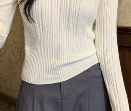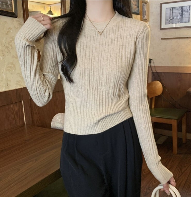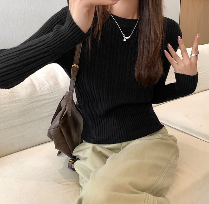 着用するだけで大人可愛い雰囲気が漂うエレガントウエストスリムリブニット。